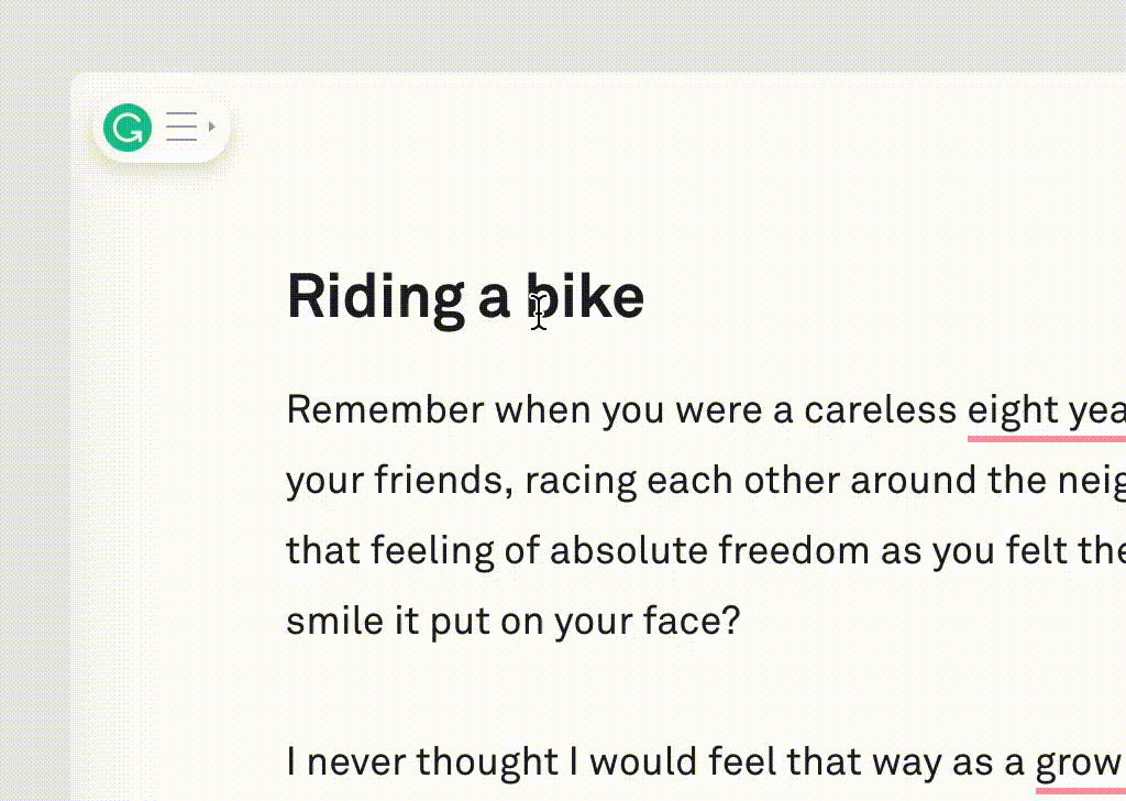 Khi Grammarly tìm thấy lỗi trong văn bản, nó sẽ đánh dấu bằng cách gạch chân câu từ sai với màu sắc tương ứng. Để xem các gợi ý sửa, bạn click vào phần văn bản có gạch chân.